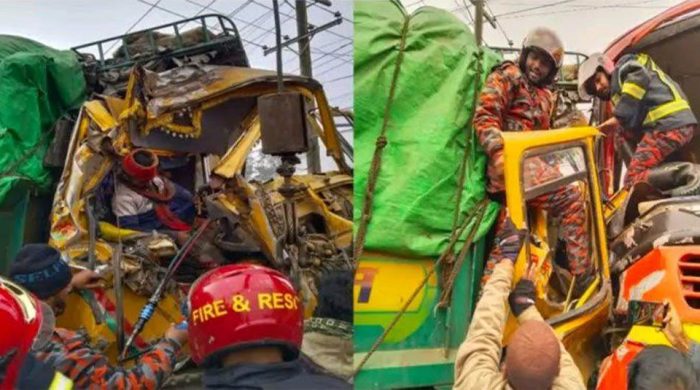 শাজাহানপুরে বাস–ট্রাকের মুখোমুখি সংঘর্ষ, ট্রাকচালক আশঙ্কাজনক
