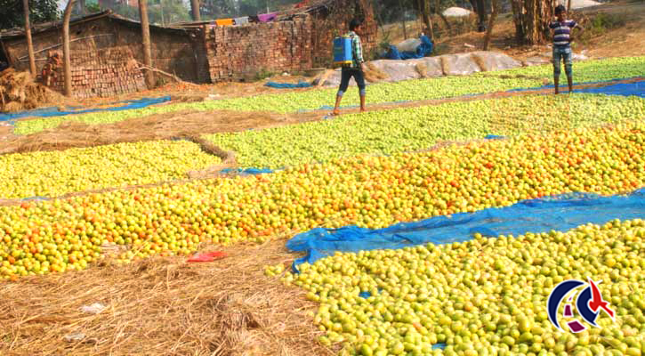 এরপর তারা জমি থেকেই প্লাস্টিকের ক্যারেটে ভরে ট্রাকে তুলে দেন। এভাবেই পর্যায়ক্রমে জমি থেকে টমেটো তোলা হচ্ছে এবং স্প্রে করে রোদে শুকিয়ে তা দেশের বিভিন্ন বাজারে সরবরাহ করা হচ্ছে। কেউ সবুজ টমেটো নিতে রাজি না হওয়ায় তারা বাধ্য হয়েই স্প্রে করছেন। কেবল তিনিই নন, উপজেলার প্রতিটি কৃষক একই প্রক্রিয়ায় টমেটো উৎপাদন ও বিপণন করছেন। সহনীয় মাত্রায় স্প্রে করায় এই টমেটো মানবদেহের জন্য কোনো ক্ষতির কারণ হবে না বলেও দাবি করেন এই কৃষক।