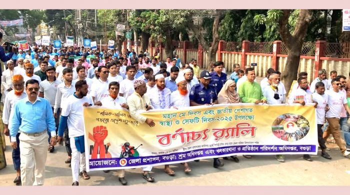 স্টাফ রিপোর্টার মহান মে দিবস ও জাতীয় পেশাগত স্বাস্থ্য ও সেফটি দিবস উপলক্ষে বগুড়ায় বিভিন্ন কর্মসূচি পালিত হয়েছে। দিবসটি উপলক্ষে বৃহস্পতিবার (১ মে) সকাল ৯টায় জেলা প্রশাসন, শ্রম অধিদপ্তর এবং