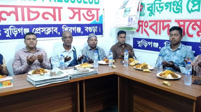 শিবগঞ্জ (বগুড়া) প্রতিনিধি বগুড়ার শিবগঞ্জ উপজেলার বুড়িগঞ্জ প্রেসক্লাবের আয়োজনে দোয়া ও ইফতার মাহফিল অনুষ্ঠিত হয়। মঙ্গলবার (২৫ মার্চ) ২৪ রমজান বুড়িগঞ্জ প্রেসক্লাবে দোয়া ও ইফতার মাহফিলে উপস্থিত ছিলেন বুড়িগঞ্জ প্রেসক্লাবের সভাপতি