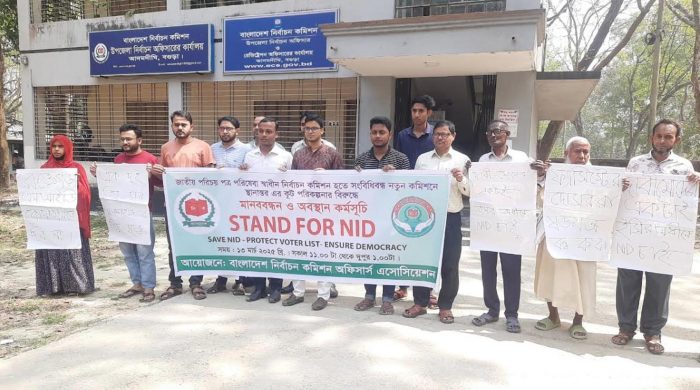 আদমদীঘি (বগুড়া) প্রতিনিধি জাতীয় পরিচয়পত্র পরিষেবা স্বাধীন নির্বাচন কমিশন হতে সংবিধিবদ্ধ নতুন কমিশনে হস্তান্তরের পরিকল্পনার বিরুদ্ধে বাংলাদেশ নির্বাচন কমিশন অফিসার্স এসোসিয়েশনের কর্মসুচী মোতাবেক আদমদীঘি উপজেলা নির্বাচন অফিসের উদ্যোগে মানববন্ধন ও