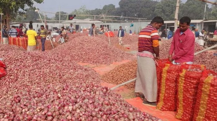 কৃষকের পেঁয়াজ বাজারে ঢোকার সঙ্গে সঙ্গে ব্যাপক দরপতন শুরু হয়েছে। সপ্তাহের ব্যবধানে দেশের বিভিন্ন বাজারে পেঁয়াজের দাম কমে অর্ধেকে নেমে এসেছে। পেঁয়াজ উৎপাদনের এলাকা হিসেবে খ্যাত ফরিদপুরেও পাইকারি বাজারে পেঁয়াজের