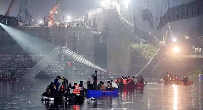 ভারতের গুজরাটের মোরবিতে ব্রিটিশ আমলের একটি সেতু সংস্কারের মাত্র এক সপ্তাহ পরেই ভেঙে পড়েছে। এতে মৃতের সংখ্যা বেড়ে দাঁড়িয়েছে কমপক্ষে ১৪১ জনে। এছাড়া এখন পর্যন্ত প্রায় ১৭৭ জনকে উদ্ধার করা