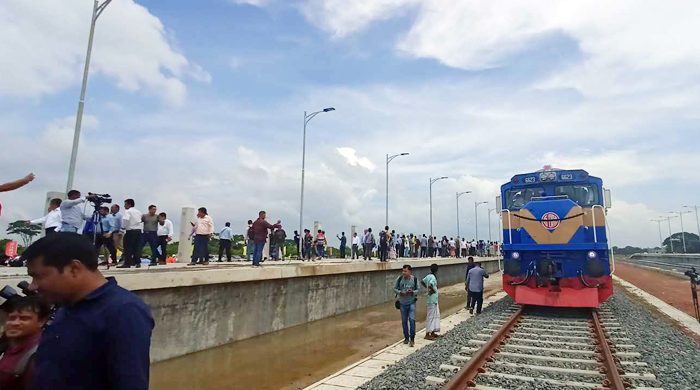 পদ্মা বহুমুখী সেতুতে সড়ক পথে যানবাহন চালুর পরে এবার রেল চলাচলের জন্য পরীক্ষামূলক চালু হয়েছে ট্রেন চলাচল। বৃহস্পতিবার (৭ সেপ্টেম্বর) সকাল ১০টা ৭ মিনিটে কমলাপুর রেলওয়ে স্টেশন থেকে ট্রেনটি যাত্রা