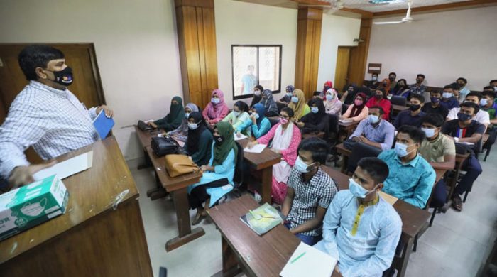 দীর্ঘ দেড় বছর পর ঢাকা বিশ্ববিদ্যালয়ে (ঢাবি) সশরীরে পাঠদান কার্যক্রম আজ রবিবার (১৭ অক্টোবর) শুরু হয়েছে। এতদিন অনলাইনে ক্লাস চললেও এখন থেকে সশরীরে শ্রেণিকক্ষে উপস্থিত হয়ে ক্লাস ও পরীক্ষায় অংশ