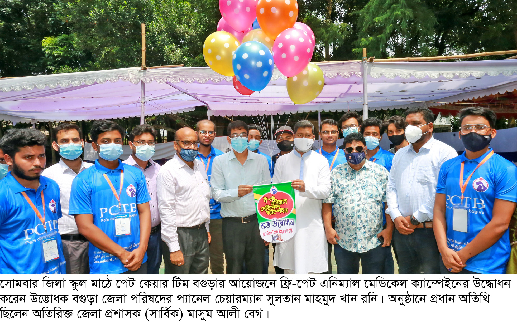 প্রেস রিলিজ পেট কেয়ার টিম বগুড়ার আয়োজনে ফ্রি-পেট এনিম্যাল মেডিকেল ক্যাম্পেইনের উদ্ধোধন অনুষ্ঠিত হয়েছে। সোমবার বগুড়া জিলা স্কুল মাঠে দিনব্যাপি পেট কেয়ার টিম বগুড়ার আয়োজনে ফ্রি-পেট এনিম্যাল মেডিকেল ক্যাম্পেইনের উদ্ধোধন