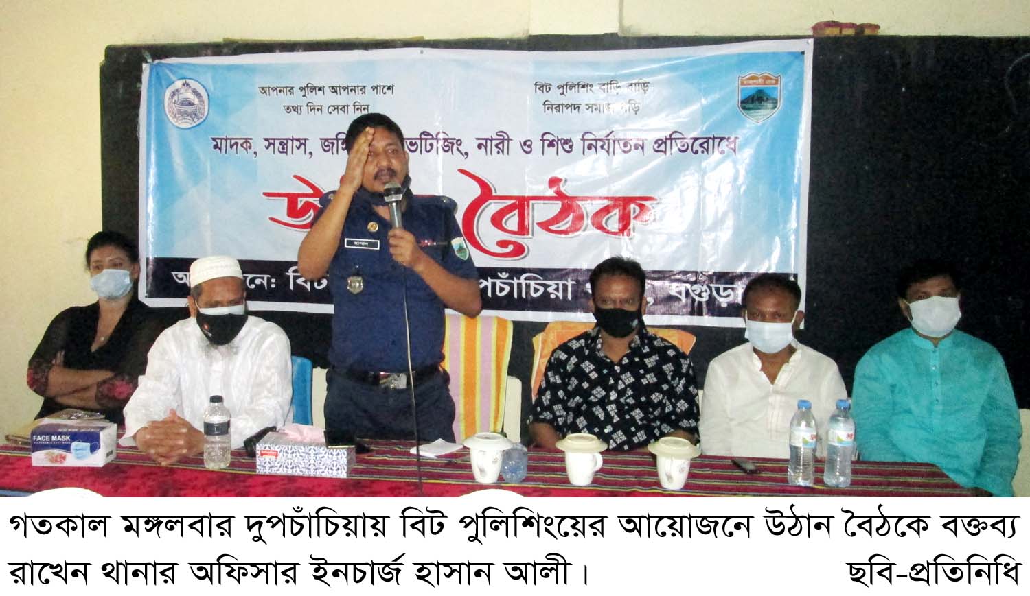 দুপচাঁচিয়া(বগুড়া)প্রতিনিধি বিট পুলিশিং দুপচাঁচিয়া থানার আয়োজনে মাদক, সন্ত্রাস, জঙ্গিবাদ, কিশোর গ্যাং, ইভটিজিং, বাল্য বিবাহ রোধকল্পে এবং পুরো পৌরসভা সিসি ক্যামেরার আওতাধীন আনার লক্ষ্যে ১নং ওয়ার্ডের গন্যমান্য ব্যক্তিবর্গদের নিয়ে উঠান বৈঠক