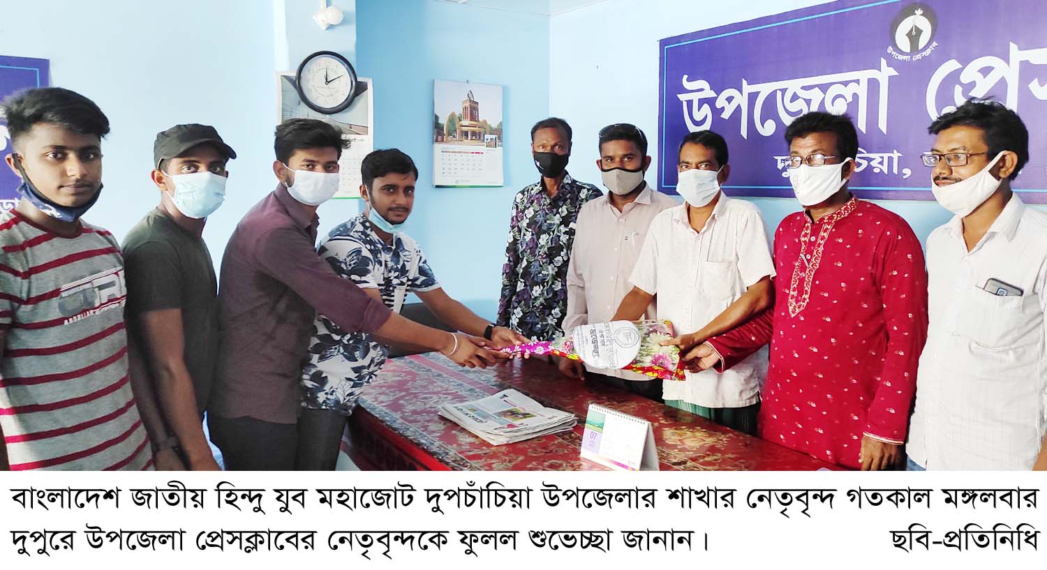 দুপচাঁচিয়া(বগুড়া)প্রতিনিধিঃ বাংলাদেশ জাতীয় হিন্দু যুব মহাজোট দুপচাঁচিয়া উপজেলার শাখার নেতৃবৃন্দ মঙ্গলবার দুপুরে উপজেলা প্রেসক্লাবে উপস্থিত হয়ে প্রেসক্লাবের নেতৃবৃন্দের সাথে সৌজন্য সাক্ষাত করে ফুলেল শুভেচ্ছা জানিয়েছেন। এসময় উপস্থিত ছিলেন বাংলাদেশ জাতীয়