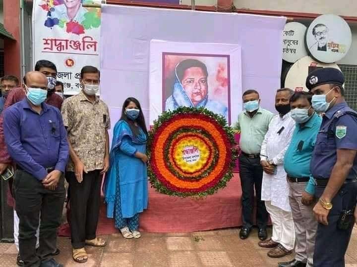 গাবতলী (বগুড়া) প্রতিনিধি জাতীর জনক বঙ্গবন্ধু শেখ মুজিবুর রহমানের সহধর্মিণী বঙ্গমাতা বেগম ফজিলাতুন্নেসার ৯১তম জন্মবাষির্কী উপলক্ষে রবিবার বগুড়ার গাবতলীতে উপজেলা প্রশাসনের উদ্যেগে বঙ্গমাতা বেগম ফজিলাতুন্নেসার প্রতিকৃতিতে ফুল দিয়ে শ্রদ্ধাঞ্জলী জানানো