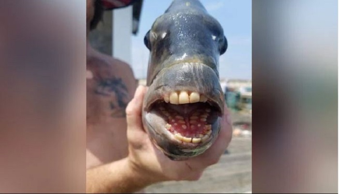 ডেস্ক রিপোর্ট ছবিতে দেখা গেছে, মাছটির দুই মাড়িতেই দাঁত আছে। দাঁতগুলো দেখতে অনেকটা মানুষের দাঁতের মতো। এ ছাড়া মুখের ভেতরের দিকেও কয়েকটি দাঁত রয়েছে মাছটির। বলা হচ্ছে মাছটির নাম