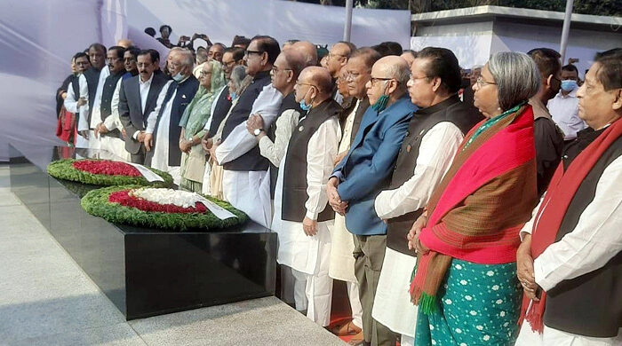 বঙ্গবন্ধু শেখ মুজিবুর রহমানের প্রতিকৃতিতে শ্রদ্ধা জানিয়েছে আওয়ামী লীগের নবনির্বাচিত কমিটি। রোববার (২৫ ডিসেম্বর) সকাল ১০টায় ধানমন্ডিতে বঙ্গবন্ধু ভবন প্রাঙ্গণে দলের নবনির্বাচিত সভাপতি শেখ হাসিনার নেতৃত্বে কেন্দ্রীয় কার্যনির্বাহী সংসদ শ্রদ্ধা