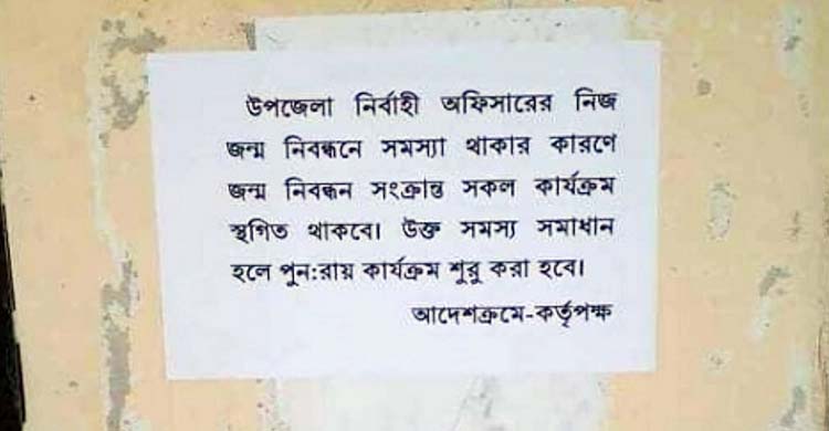 নিজের জন্ম নিবন্ধনে ভুল থাকায় অফিসের সেবা বন্ধ রাখলেন ইউএনও