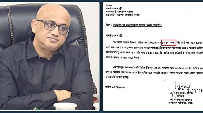 ব্যক্তিগত কারণ দেখিয়ে মন্ত্রিসভা থেকে পদত্যাগ করছেন তথ্য প্রতিমন্ত্রী ডা. মুরাদ হাসান। সম্প্রতি সামাজিক যোগাযোগ মাধ্যমে অসৌজন্যমূলক বক্তব্য দেওয়ায় তাকে আজ মঙ্গলবারের মধ্যে মন্ত্রিসভা থেকে পদত্যাগ করতে প্রধানমন্ত্রী শেখ হাসিনার