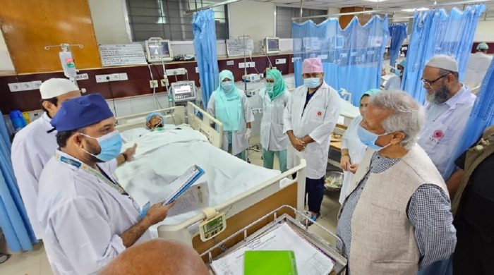 ছাত্র জনতার গণ অভ্যুত্থানে গুরুতর আহত ব্যক্তিদের খোঁজ নিতে শনিবার (৭ সেপ্টেম্বর) ন্যাশনাল ইনস্টিটিউট অব নিউরোসায়েন্সেস অ্যান্ড হাসপাতালে গিয়েছেন প্রধান উপদেষ্টা ড. মুহাম্মদ ইউনূস। রাজধানীর ন্যাশনাল ইনস্টিটিউট অব নিউরোসায়েন্সেস অ্যান্ড