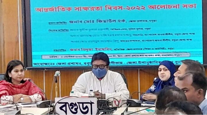 বগুড়া জেলা প্রশাসনের আয়োজনে উপানুষ্ঠানিক শিক্ষা ব্যুরোর সহযোগিতায় বৃহস্পতিবার করতোয়া সম্মেলন কক্ষে আন্তর্জাতিক সাক্ষরতা দিবস ২০২২ এর আলোচনা সভা অনুষ্ঠিত হয়। সাক্ষরতা শিখন ক্ষেত্রের প্রসার এ প্রতিপাদ্য বিষয়ের আলোকে “রেডিও