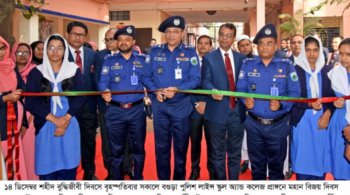১৪ ডিসেম্বর শহীদ বুদ্ধিজীবী দিবসে বৃহস্পতিবার সকাল ১০টায় বগুড়া পুলিশ লাইন্স স্কুল অ্যান্ড কলেজ প্রাঙ্গনে মহান বিজয় দিবস ২০২৩ উপলক্ষে ৪ দিনব্যাপী মহান মুক্তিযুদ্ধের আলোকচিত্র প্রদর্শনী শুরু হয়েছে। অত্র প্রতিষ্ঠানের