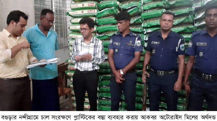 নন্দীগ্রামে রাইস মিলে প্লাস্টিকের বস্তায় চাল সংরক্ষণে জরিমানা