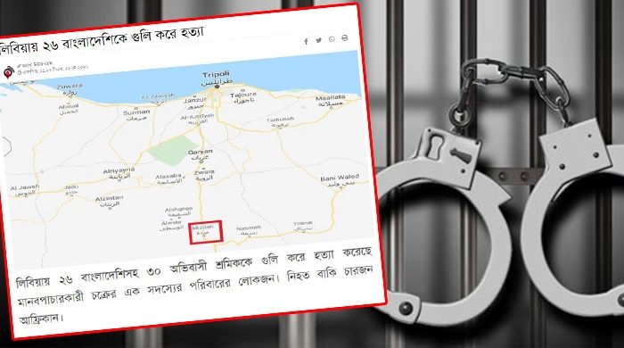 প্রায় দুই ডজন বাংলাদেশি অভিবাসীকে গুলি করে হত্যার অভিযোগে সন্দেহভাজন এক আসামিকে গ্রেফতার করেছে লিবিয়া। দীর্ঘদিনের তদন্তে বর্বরোচিত ওই ঘটনায় অভিযুক্ত ব্যক্তি জড়িত থাকার প্রমাণ মিলেছে বলে নিশ্চিত করেছে লিবীয়