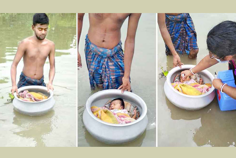 ডেস্ক রিপোর্ট টানা বৃষ্টিতে ডুবে গেছে বাড়ির আশেপাশের সব রাস্তা। এমতাবস্থায় শিশু সন্তানকে পাতিলে ভাসিয়ে পোলিও টিকা খাওয়াতে নিয়ে আসলেন এক ব্যক্তি। ঘটনাটি ঘটেছে ভারতের পশ্চিমবঙ্গে। ওই ঘটনার ছবি প্রকাশ