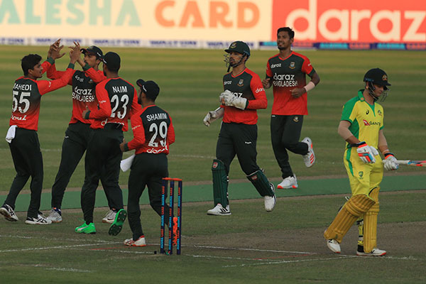 স্পোর্টস ডেস্ক আবারও ব্রেক থ্রু উপহার দিলেন মেহেদি হাসান। ইনিংসের প্রথম ওভারের চতুর্থ বলে অস্ট্রেলিয়ান অধিনায়ক ম্যাথু ওয়েডকে আউট করে ওপেনিং জুটি ভাঙেন মেহেদি।   পাঁচ ম্যাচের টি-টোয়েন্টি সিরিজের প্রথম