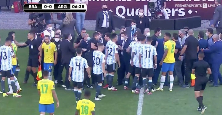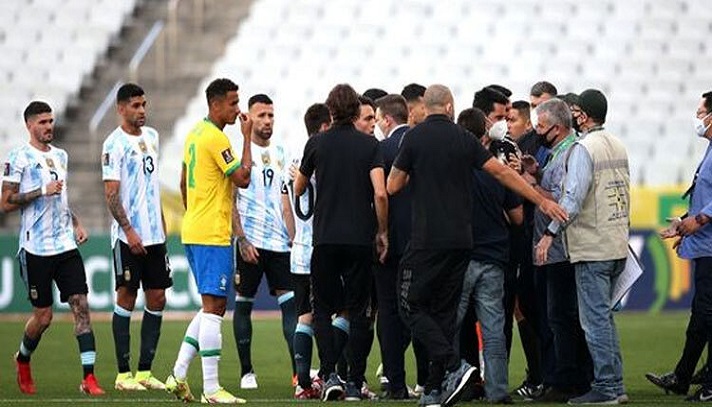 স্পোর্টস ডেস্ক মাত্র শুরু হয়েছে। খেলা গড়িয়েছে ৫ মিনিট। এর মধ্যেই হঠাৎ বন্ধ করে দেওয়া হলো ব্রাজিল-আর্জেন্টিনার বহুল প্রতীক্ষিত ম্যাচটি। আর্জেন্টাইন কয়েকজন খেলোয়াড়ের স্বাস্থ্য ছাড়পত্র ছাড়াই মাঠে নেমে পড়া নিয়ে