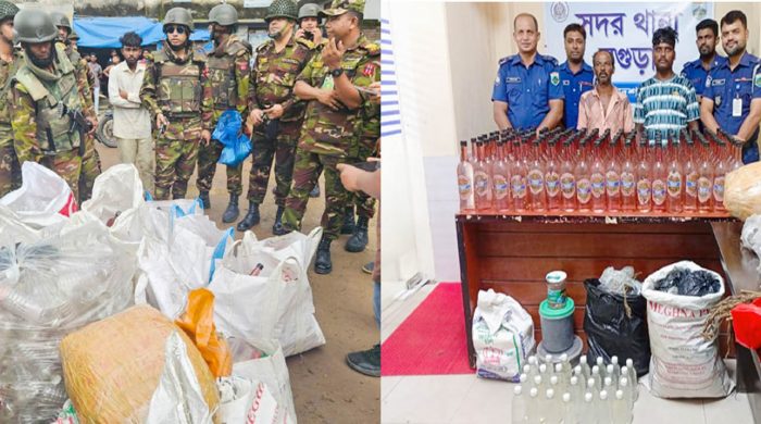 এম এ করিম বগুড়া শহরের চকসূত্রাপুর এলাকার বাশফোঁড় কলোনীতে যৌথবাহিনী অভিযান চালিয়ে বিপুল পরিমাণ মাদকদ্রব্য উদ্ধার করেছে জেলা পুলিশ ও সেনাবাহিনী। মঙ্গলবার (১৬ সেপ্টেম্বর) দুপুর ১২টা থেকে বেলা ২টা পর্যন্ত