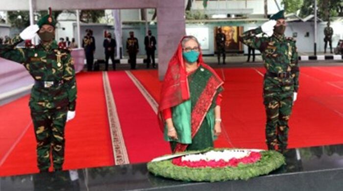 আওয়ামী লীগের প্রতিষ্ঠাবার্ষিকী উপলক্ষে বৃহস্পতিবার সকালে রাজধানীর ধানমন্ডি ৩২ এ বঙ্গবন্ধুর প্রতিকৃতিতে ফুল দিয়ে শ্রদ্ধা জানিয়েছেন প্রধানমন্ত্রী শেখ হাসিনা। এ সময় আওয়ামী লীগের শীর্ষ নেতারা উপস্থিত ছিলেন। আজ ২৩ জুন
