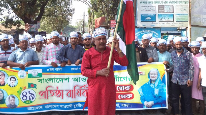 বগুড়ার নন্দীগ্রামে নানা আয়োজনে উৎসবমুখর পরিবেশে বাংলাদেশ আওয়ামী যুবলীগের ৪৯তম প্রতিষ্ঠাবার্ষিকী পালিত হয়েছে। বৃহস্পতিবার (১১ নভেম্বর) বেলা ১১ টায় উপজেলা যুবলীগের উদ্যোগে একটি বর্ণাঢ্য র্যালি পৌর শহরের বিভিন্ন সড়ক প্রদক্ষিণ