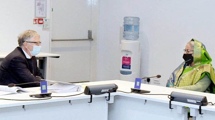 প্রধানমন্ত্রী শেখ হাসিনার সঙ্গে সৌজন্য সাক্ষাৎ করেছেন বিশ্বসেরা প্রযুক্তি জায়ান্ট মাইক্রোসফটের প্রতিষ্ঠাতা বিল গেটস। সোমবার (১ নভেম্বর) স্কটল্যান্ডের গ্লাসগোতে বিশ্ব জলবায়ু সম্মেলন (কপ-২৬) কেন্দ্রের মিটিং রুমে এ সাক্ষাৎ হয়। তাদের