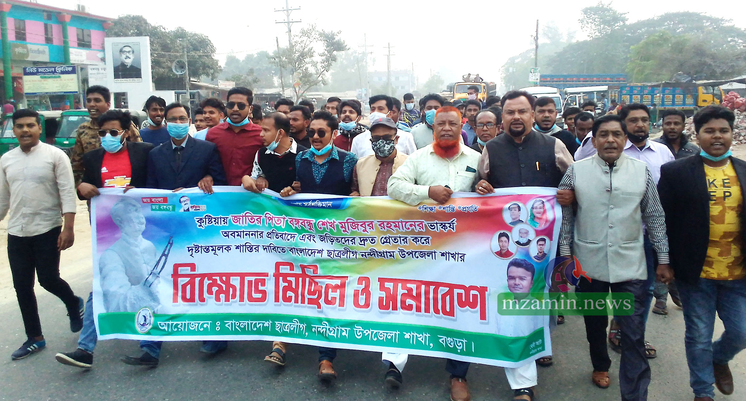 স্টাফ রিপোর্টার, বগুড়া গতকাল বেলা ১২ টায় সাতমাথায় বগুড়া জেলা আওয়ামী স্বেচ্ছাসেবক লীগ আয়োজিত স্বাধীন বাংলার মহান স্থপতি, বাঙ্গালি জাতির জনক বঙ্গবন্ধু শেখ মুজিবুর রহমান এর ভাস্কর্য অবমাননা ও ভাংচুরের