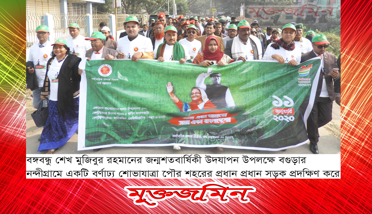 নন্দীগ্রাম (বগুড়া) প্রতিনিধি জাতির পিতা বঙ্গবন্ধু শেখ মুজিবুর রহমানের জন্মশতবার্ষিকী উদযাপন উপলক্ষে বগুড়ার নন্দীগ্রামে বর্ণাঢ্য শোভাযাত্রা, স্থিরচিত্র ও আলোচনা সভা অনুষ্ঠিত হয়েছে। শনিবার সকালে উপজেলা প্রশাসনের আয়োজনে একটি বর্ণাঢ্য শোভাযাত্রা