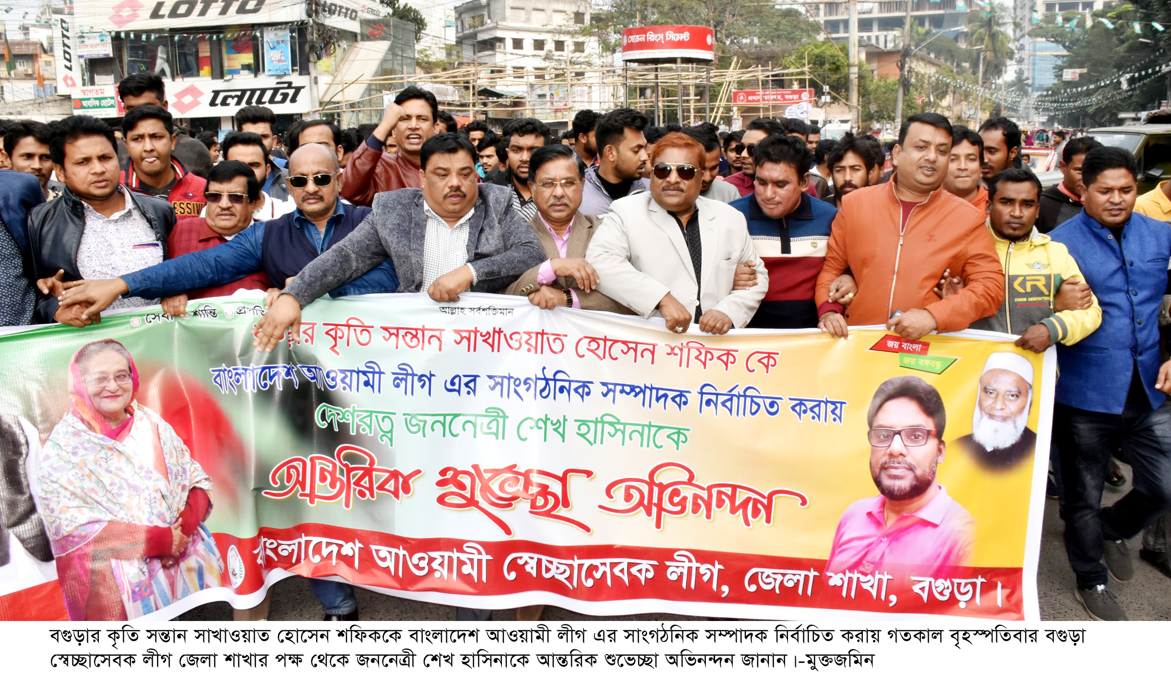 স্টাফ রিপোর্টার, বগুড়া বগুড়ার সাবেক ছাত্রনেতা সাখাওয়াত হোসেন শফিক’কে বাংলাদেশ আওয়ামী লীগ কেন্দ্রীয় নির্বাহী কমিটির সাংগঠনিক সম্পাদক নির্বাচিত করায় প্রধান মন্ত্রী জননেত্রী শেখ হাসিনাকে শুভেচ্ছা ও অভিনন্দন জানিয়ে বগুড়ায় র্যালি