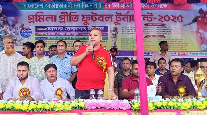 গাবতলী (বগুড়া) প্রতিনিধি বগুড়া গাবতলীর সোন্দাবাড়ী যুব সমাজের আয়োজনে স্থানীয় হাইস্কুল মাঠে নারী ফুটবল টুর্ণামেন্টর ফাইনাল খেলা অনুষ্ঠিত হয়। এতে প্রধান অতিথির বক্তব্য রাখেন জেলা বিএনপির সহ-সভাপতি ও গাবতলী উপজেলা