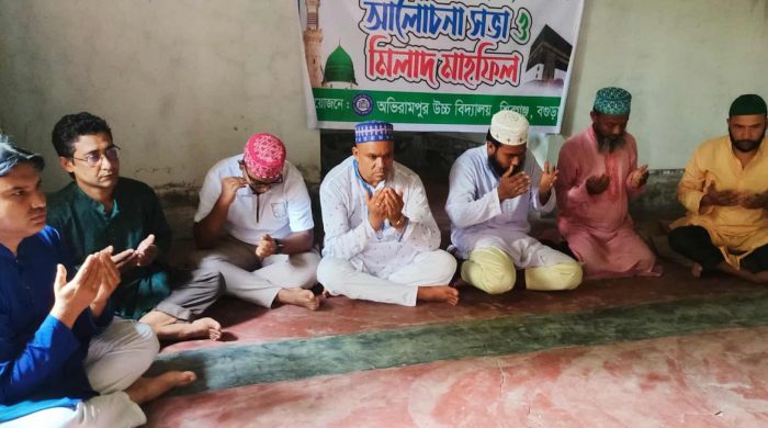 মোকামতলা (বগুড়া) প্রতিনিধি বগুড়ার শিবগঞ্জের অভিরামপুর উচ্চ বিদ্যালয়ে পবিত্র ঈদ-ই-মিলাদুন্নবী (সাঃ) পালিত হয়েছে। শনিবার সকালে অভিরামপুর উচ্চ বিদ্যালয়ের হলরুমে আলোচনা সভা শেষে বিদ্যালয়ের মসজিদ প্রাঙ্গণে মিলাদ ও দোয়া মাহফিল অনুষ্ঠিত হয়।এসময়