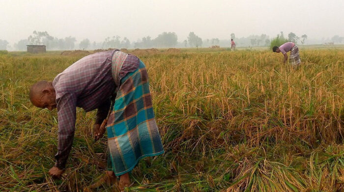 ঈদের আমেজ পড়ে গেছে চারিদিকে। ঈদ আয়োজনে ঘরে ঘরে ব্যস্ত সময় পার হচ্ছে। আর এই ঈদের আমেজে বগুড়ার মাঠে মাঠে বোরো ধান কাটা শুরু হয়েছে। ঝরঝরা রোদে ঝনঝনিয়ে উঠা সোনালি