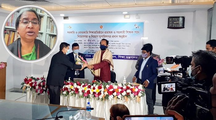 ডিজিটাল পদ্ধতিতে সারাদেশে সরকারি-বেসরকারি শিক্ষাপ্রতিষ্ঠানে ৩৬ হাজার শিক্ষক নিয়োগপত্র পেয়েছেন। শিক্ষামন্ত্রী ডা. দীপু মনি ভার্চুয়ালি প্রধান অতিথি হিসেবে উপস্থিত থেকে তাদের হাতে নিয়োগপত্র তুলে দিয়েছেন। সোমবার (৩১ জানুয়ারি) রাজধানীর আন্তর্জাতিক