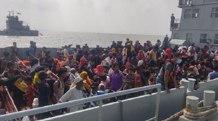 জাতিসংঘের শরণার্থী বিষয়ক সংস্থা ‘ইউএনএইচসিআর’র সহায়তা সামগ্রী নিয়ে নৌবাহিনীর দুটি জাহাজ নোয়াখালীর ভাসানচরে পৌঁছেছে। বুধবার (১৭ নভেম্বর) দুপুরে জাহাজ দুটি ভাসানচর পৌঁছায়। এরমধ্যে ‘বানৌজা টুনা’ দুপুর ১২টায় এবং ‘বানৌজা তিমি’