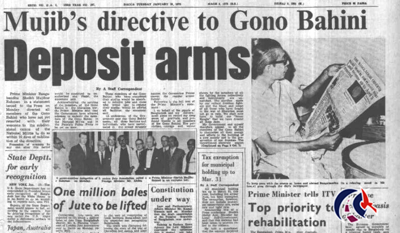 ১৭ জানুয়ারি: গণবাহিনীকে অস্ত্র জমা দেওয়ার নির্দেশ