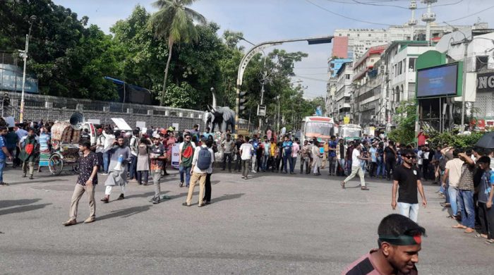 কোটা বাতিলের একদফা দাবিতে দ্বিতীয় দিনের মতো রাজধানীর সায়েন্সল্যাব মোড় অবরোধ করেছেন শিক্ষার্থীরা। সোমবার (৮ জুলাই) পূর্ব ঘোষণা অনুযায়ী বিকেল ৩টা ৫৫ মিনিটের দিকে ঢাকা কলেজের মূল ফটকের সামনে সাত