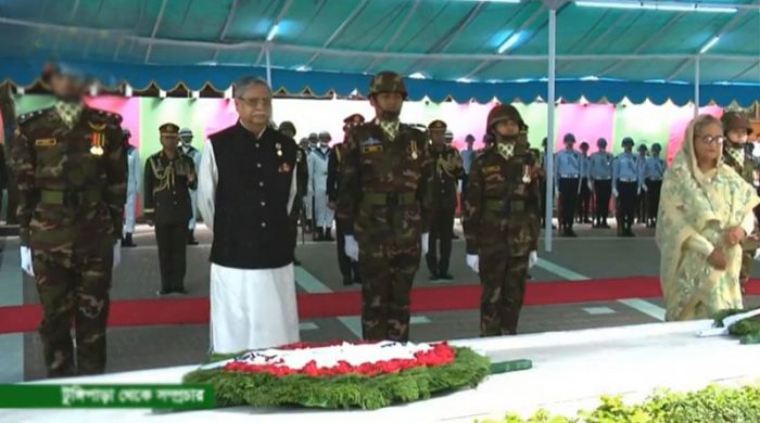 বঙ্গবন্ধু শেখ মুজিবুর রহমানের ১০৪তম জন্মবার্ষিকী ও জাতীয় শিশু দিবস উপলক্ষে গোপালগঞ্জের টুঙ্গিপাড়ায় তার সমাধিতে শ্রদ্ধা নিবেদন করেছেন রাষ্ট্রপতি মো. সাহাবুদ্দিন ও প্রধানমন্ত্রী শেখ হাসিনা। রোববার (১৭ মার্চ) সকাল সাড়ে