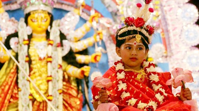 চলছে পাঁচদিনের সার্বজনীন শারদীয় দুর্গোৎসব। সব বয়সী বাঙালি হিন্দু ধর্মাবলম্বী মানুষের হৃদয়ে বাঁধভাঙা আনন্দের জোয়ার। এর মধ্যে গতকাল দুর্গতিনাশিনী মা দেবীর নবপত্রিকা প্রবেশ ও স্থাপনের মাধ্যমে মহাসপ্তমী পূজা হয়। যা