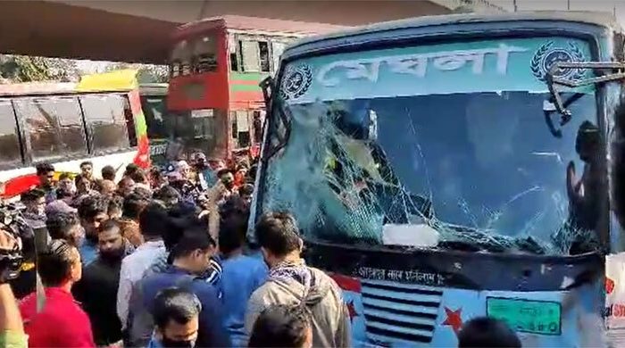 ‘হাফ ভাড়া’র দাবিতে রাজধানীর সায়েন্সল্যাবে বাসে ভাঙচুর চালিয়েছে সিটি ও আইডিয়াল কলেজের শিক্ষার্থীরা। এসময় তারা অন্তত ১০টি বাসে ভাঙচুর চালায়। শনিবার (২০ নভেম্বর) দুপুর সাড়ে ১২টায় সায়েন্সল্যাবের ল্যাবএইড হাসপাতালের সামনের