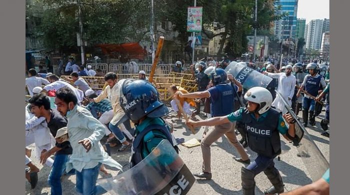 কুমিল্লার ঘটনার জেরে গত শুক্রবার রাজধানীর পল্টনের নাইটিঙ্গেল মোড়ে বিক্ষোভকারী ও পুলিশের মধ্যে সংঘর্ষের ঘটনা ঘটে। এ ঘটনায় দুই মামলায় চার হাজার ব্যক্তিকে আসামি করা হয়েছে। মিছিলের নামে পুলিশের ওপর