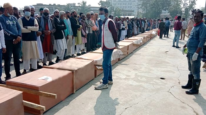 লঞ্চ অগ্নিকাণ্ডে নিহত ২৯ জনের জানাজা সম্পন্ন হয়েছে। শনিবার (২৫ ডিসেম্বর) বেলা ১১টায় বরগুনা সার্কিট হাউস সংলগ্ন ঈদগাহ মাঠে এই জানাজা অনুষ্ঠিত হয়। ওই ঘটনায় নিহত ৪১ জনের ৩৭ জনই