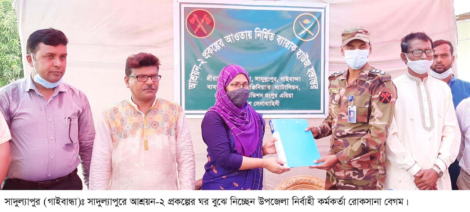 সাদুল্যাপুরে সেনাবাহিনীর তত্ত্ববধানে নির্মিত ঘর হতদরিদ্র সুবিধাভোগীদের মাঝে হস্তান্তর