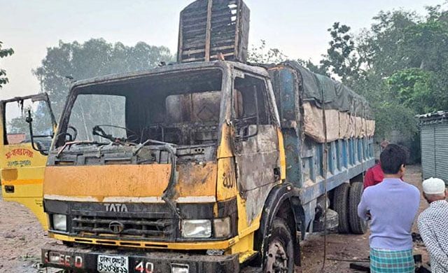দিনাজপুর শহরে দাঁড়িয়ে থাকা ভুট্টা বোঝাই একটি ট্রাকে আগুন দিয়েছে দুর্বৃত্তরা। এতে কেউ হতাহত না হলেও ট্রাকের সামনের কেবিনটি পুড়ে গেছে। সোমবার ভোর ৫টায় শহরের দিনাজপুর এম আব্দুর রহিম মেডিকেল