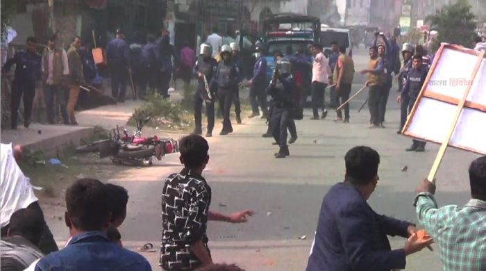 নাটোরে বিক্ষোভ কর্মসূচি পালনকালে বিএনপি ও পুলিশের মধ্যে সংঘর্ষের ঘটনা ঘটেছে। এতে পুলিশ, সংবাদকর্মীসহ অর্ধশতাধিক আহত হয়েছেন। সোমবার (২২ নভেম্বর) সকাল ১১টার দিকে শহরের আলাইপুর এলাকায় এ ঘটনা ঘটে। ঘটনাস্থল