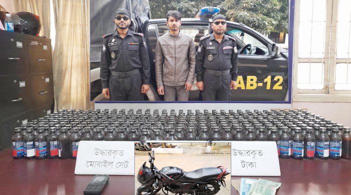 বগুড়ায় ফেন্সিডিলসহ এক মাদক ব্যবসায়ি গ্রেফতার