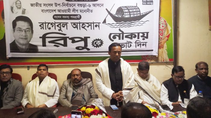 বগুড়ায় বাংলাদেশ আওয়ামীলীগ মনোনিত প্রার্থী রাগেবুল আহসান রিপুর সমর্থনে মতবিনিময় সভা অনুষ্ঠিত হয়েছে। আজ ১৯ জানুয়ারি দুপুরে বগুড়া জেলা দলীয় কার্যালয়ে মতবিনিময় সভায় প্রধান অতিথি হিসেবে উপস্থিত ছিলেন বাংলাদেশ আওয়ামী
