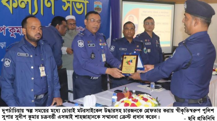 দুপচাঁচিয়া থানা এসআই শাহজাহান চোরাই মটরসাইকেল উদ্ধারসহ ঘটনার সাথে জড়িত মটরসাইকেল চোর চক্রের চার সদস্যকে গ্রেফতার করার স্বীকৃতিস্বরুপ জেলার শ্রেষ্ঠ এসআই হিসাবে শ্রেষ্ঠত্ব অর্জন করেছে। গত রোববার বগুড়া জেলা পুলিশ